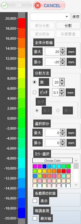 しきい値や表示色などカラーマップの設定は自由に変更できます。