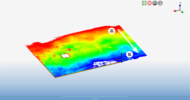 作成した平面に対して誤差評価を実行するとカラーマップ表示から勾配の程度が分かります。