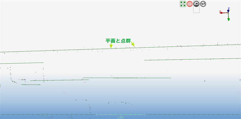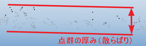 • 点群に厚みが少なく、点群なりの平面が作成できているのがわかる