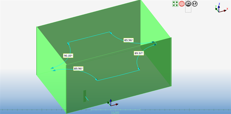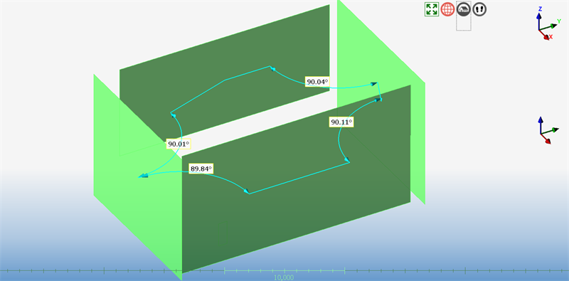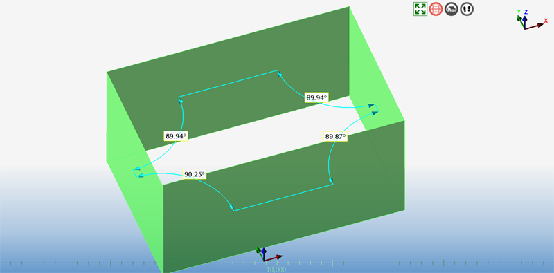 作成した平面で隣り合う外壁面間の角度を見てみました。どのデータでも同じような結果(89度~91度)が表示されていました。