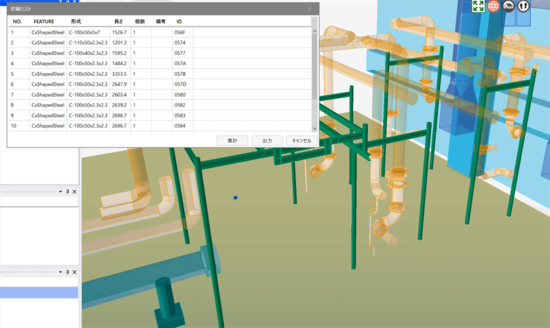 - 数量算出機能:作成した配管や鋼材の数量を算出する