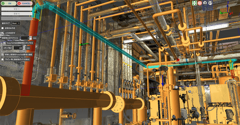 - 点群をサッとなぞるだけで配管・鋼材がモデリング出来る