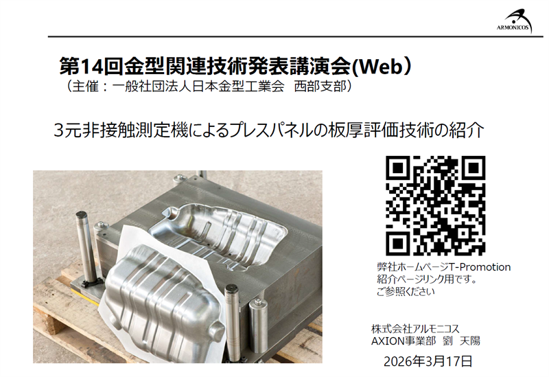 2026年3月17日 (火)、一般社団法人日本金型工業会(西部支部)主催『第14回金型関連技術発表講演会(西部支部)』(オンライン形式)にて弊社社員劉天陽が一般講演を行いました。