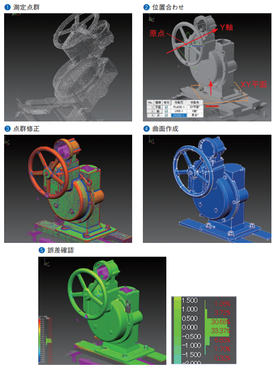 「spScan」では許容誤差を設定して、実物に忠実なCADデータを作成できます。完成したCADデータは後工程のCADシステムで読み込んで活用します。非接触3Dスキャナーと「spScan」の活用により、現場の状況に則した設備設計ができるようになりました。